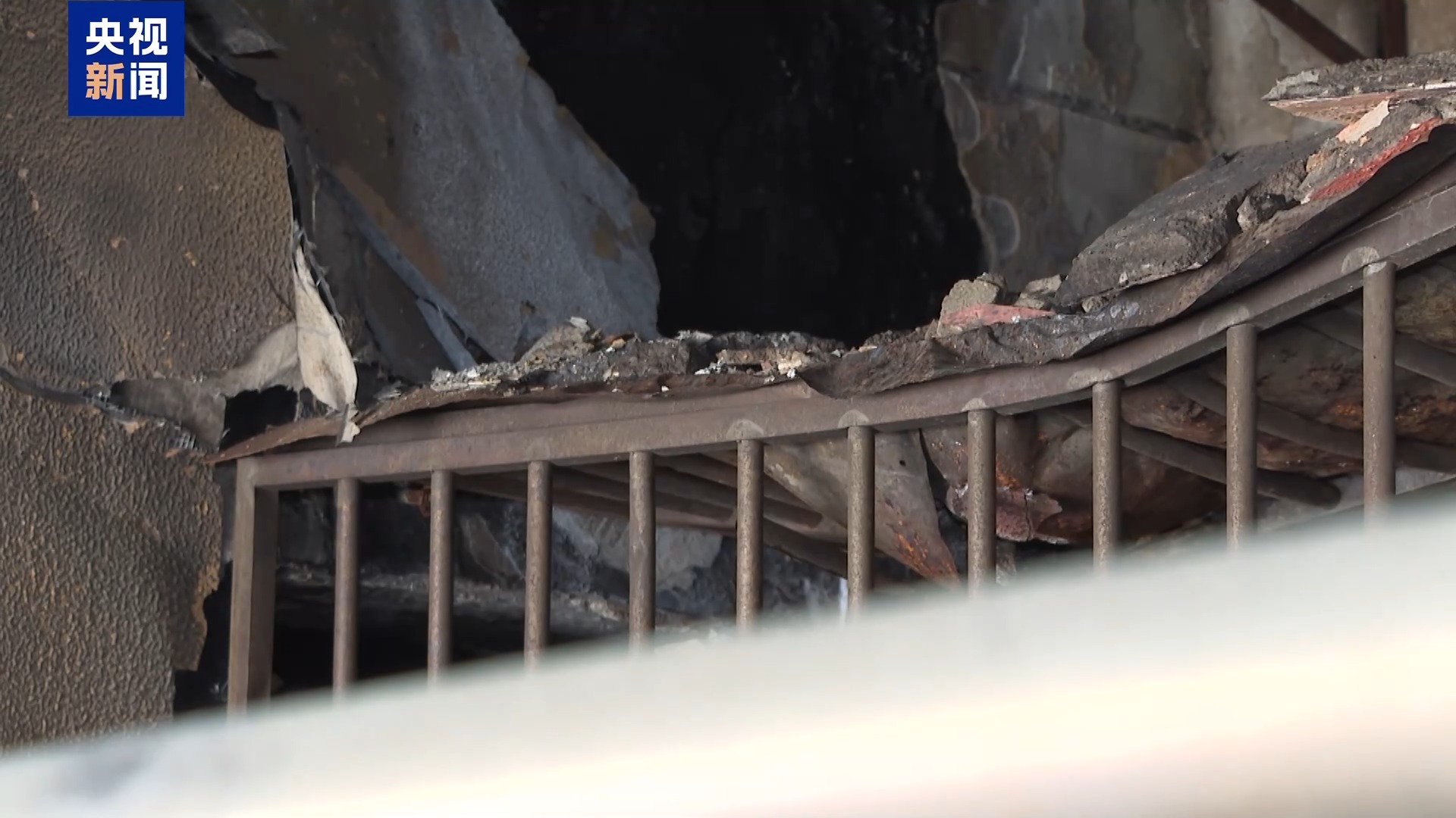 记者沿着楼梯来到楼上发觉,大火从采光通风庭院上来后,将住户外窗简略单纯平台上堆放的可燃物引燃,烧穿外窗后延伸到住户厨房,导致厨房的厨具、家电被,墙上瓷砖被熏黑,有的曾经掉落,餐厅、客堂墙皮零落,只剩下水泥砖,吊顶被烧得只看到龙骨,家具、木质粉饰物均被炭化,这个住户的房间全数偏激。