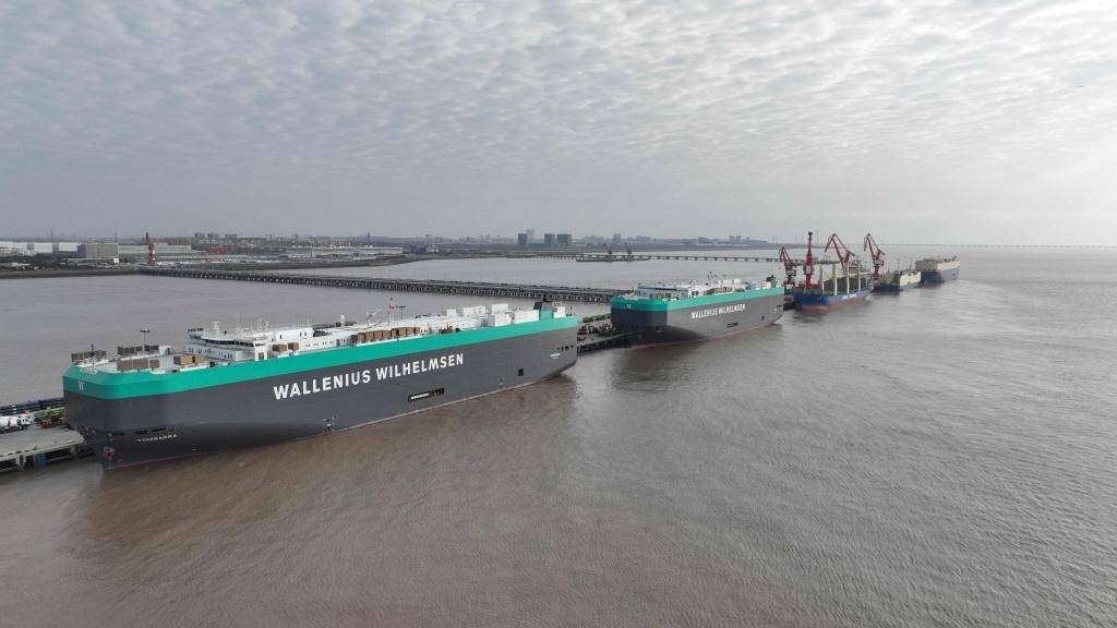 从上海迪士尼度假区往东南出发,来到集拆箱层层叠叠码放的口岸船埠。做为全球最忙碌的口岸之一,上海港春节期间一直高效运做。2月17日马年第一天凌晨时分,上海南港船埠五艘巨轮同时靠泊,工做量霎时“拉满”,船埠正在岗的190余名功课人员忙碌工做,很快,拆载有中国汽车的船舶从这里驶向全球各地。