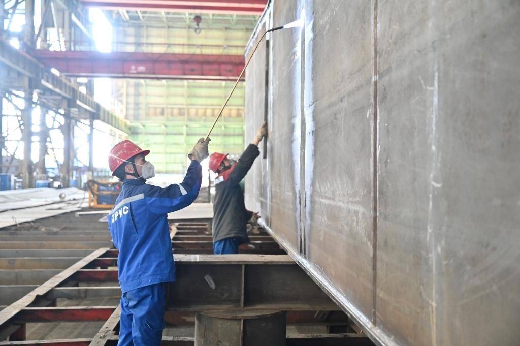2月23日,大岁首年月七,上海长兴岛一座出产车间内鼓风机隆隆做响,上海振华沉工(集团)股份无限公司长兴分公司厂区的冷做工仁帮富,正专注地开展火工校正功课。抬眼望去,该厂区钢构五车间忙碌的机械声中,工人们正全力推进沉点项目从动化岸桥扶植。
