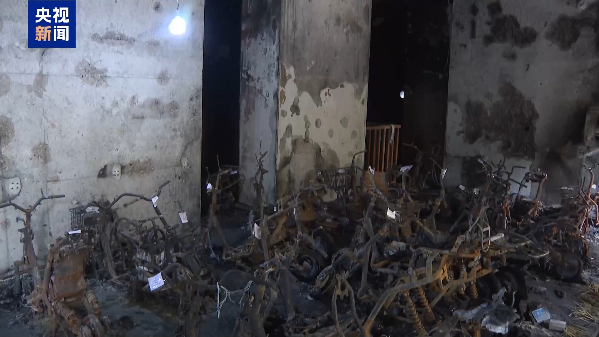 记者正在事发觉场看到,起火室第楼多户居平易近外窗均有烟熏踪迹,一层取门厅相连的架空层全数偏激,多处墙皮被高温烘烤零落,停放正在架空层的电动自行车全数被烧得只剩下车架子和轮毂,用于住户采光通风的庭院也被烟熏火燎过。